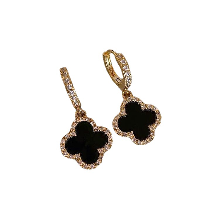 Four-leaf Grass Earrings Women's High-grade Classic Small Chanel Style Earrings 2022 New Copper Gold Plated Light Luxury Flash Diamond Zircon Earrings